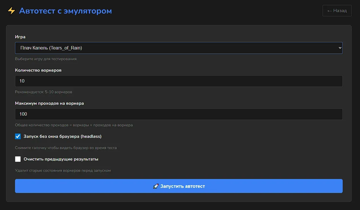 По сути это точно такие же действия, как с видимым окном, только в фоне, без отрисовки окна и действий. Понимаете теперь? Запускаем н-ное количество воркеров, я в основном запускал 10 в параллели, и даем н-ное количество проходов на каждый из них, чаще всего я выбирал 100. И вот, считайте, 10 тестировщиков проходят игру по 100 раз и записывают по своему прохождению отчет.