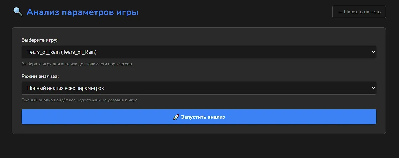 Пожалуй одним из самых важных автотестов был именно этот, так как в циклах посчитать все +- значения меняющиеся в параметре, не самая легкая затея. По этому я и написал этот скрипт автотеста в первую очередь. Тут можно провести анализ по всем параметрам в игре сразу или выбрать 1 конкретный. После анализа получаем краткую сводку: